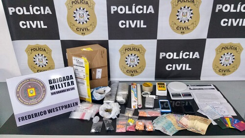 Em operação realizada em Frederico Westphalen no início desta semana, a Polícia Civil, com apoio da Brigada Militar, deu cumprimento a dois mandados de busca e apreensão, três mandados de prisão preventiva e um mandado de medidas cautelares diversas da prisão contra um grupo criminoso que atuava na cidade na venda de drogas, principalmente de drogas sintéticas, por meio de tele-entrega e em festas.