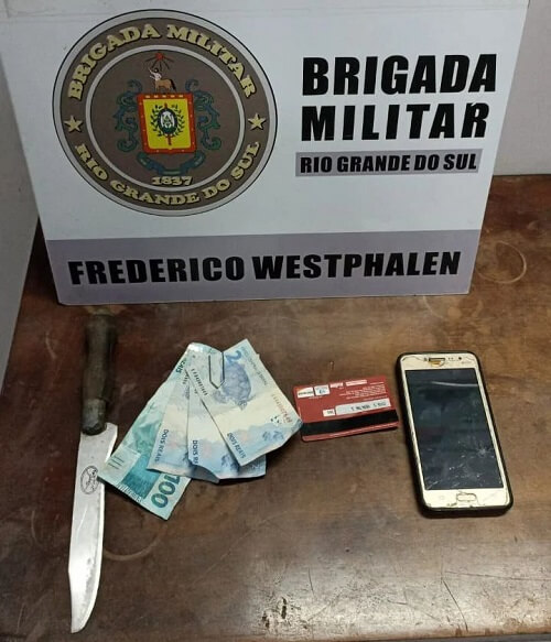 Após roubo a pedestre em Frederico Westphalen, um homem de 31 anos de idade foi preso e um adolescente de 16 anos apreendido na noite desta quarta-feira, 23.