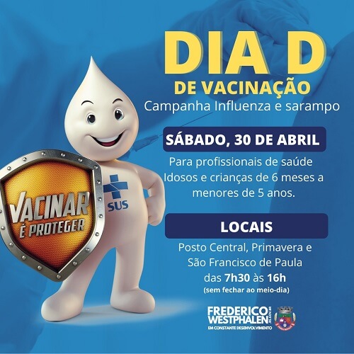 A Secretaria da Saúde (SES) e os municípios do Rio Grande do Sul estão mobilizados para este sábado, 30, quando acontece o Dia D da campanha de vacinação contra a gripe (Influenza). Mais de dois milhões de crianças (maiores de 6 meses e menores de 5 anos) e idosos estão convocados para comparecer a um dos quase dois mil postos de saúde que estarão extraordinariamente abertos na oportunidade.