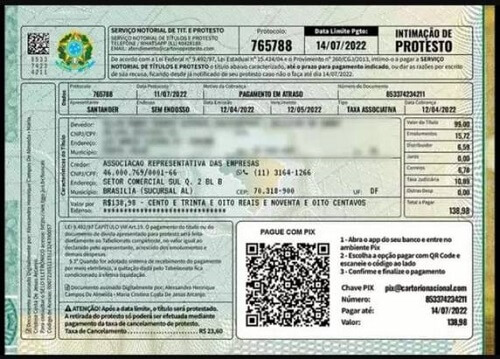 O CNPJ vinculado a este nome é de uma microempresa, com nome fantasia de “Cartório Nacional De Títulos E Protesto Ltda”. O telefone de contato na falsa intimação é de Brasília.