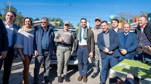 Na ocasião, também foram entregues 15 novas viaturas para a Brigada Militar, que serão destinadas a reforçar o patrulhamento das áreas rurais. Os veículos foram adquiridos com recursos oriundos do Programa de Incentivo ao Aparelhamento da Segurança Pública (Piseg) e de emendas parlamentares. Conforme o Censo Agropecuário de 2017, no Rio Grande do Sul a atividade agropecuária representa 77% da área total do Estado.