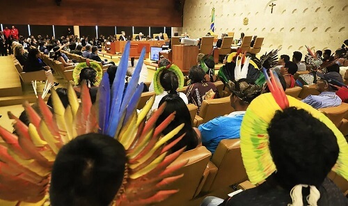 No julgamento, os ministros discutem o chamado marco temporal. Pela tese, defendida por proprietários de terras, os indígenas somente teriam direito às terras que estavam em sua posse no dia 5 de outubro de 1988, data da promulgação da Constituição Federal, ou que estavam em disputa judicial na época. Os indígenas são contra o entendimento.