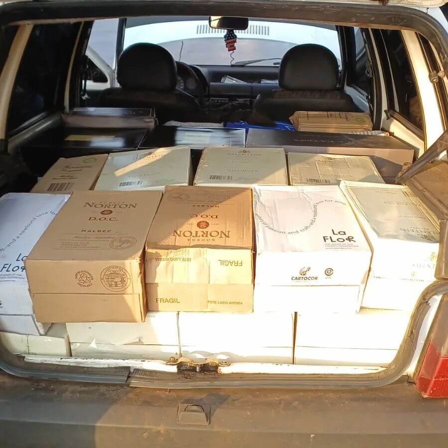 Na manhã deste domingo (03/09), policiais militares do 7° Batalhão de Polícia Militar (7°BPM), durante ações da Operação Hórus, abordaram o veículo Fiat Uno e em revista veicular foi localizado 73 garrafas de vinhos, 02 caixas de Fernet e 24 unidades (latão) de cerveja de origem estrangeira.