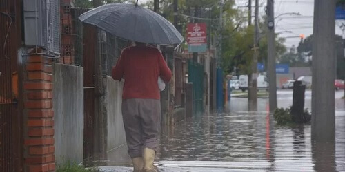 Mais ao Sul, a chuva foi muito menos volumosa, mas ainda assim caiu com elevados volumes em pontos mais a Oeste da Metade Sul com 95 mm em Dom Pedrito, 80 mm em Caçapava do Sul, 69 mm em São Gabriel, 66 mm em Encruzilhada do Sul e 52 mm em Bagé. Onde menos choveu foi na faixa entre o Chuí, Pelotas e Camaquã, no Sudeste. Os volumes excessivos no Rio Grande do Sul no fim de semana e segunda-feira são consequência da influência de uma área de baixa pressão com rio atmosférico que traz grande quantidade de umidade. De acordo com a MetSul Meteorologia, esse cenário, reforçado pelo avanço de uma frente fria pelo território gaúcho hoje, favorece intensa instabilidade com muitas descargas e chuva com volumes excessivos a extremos.