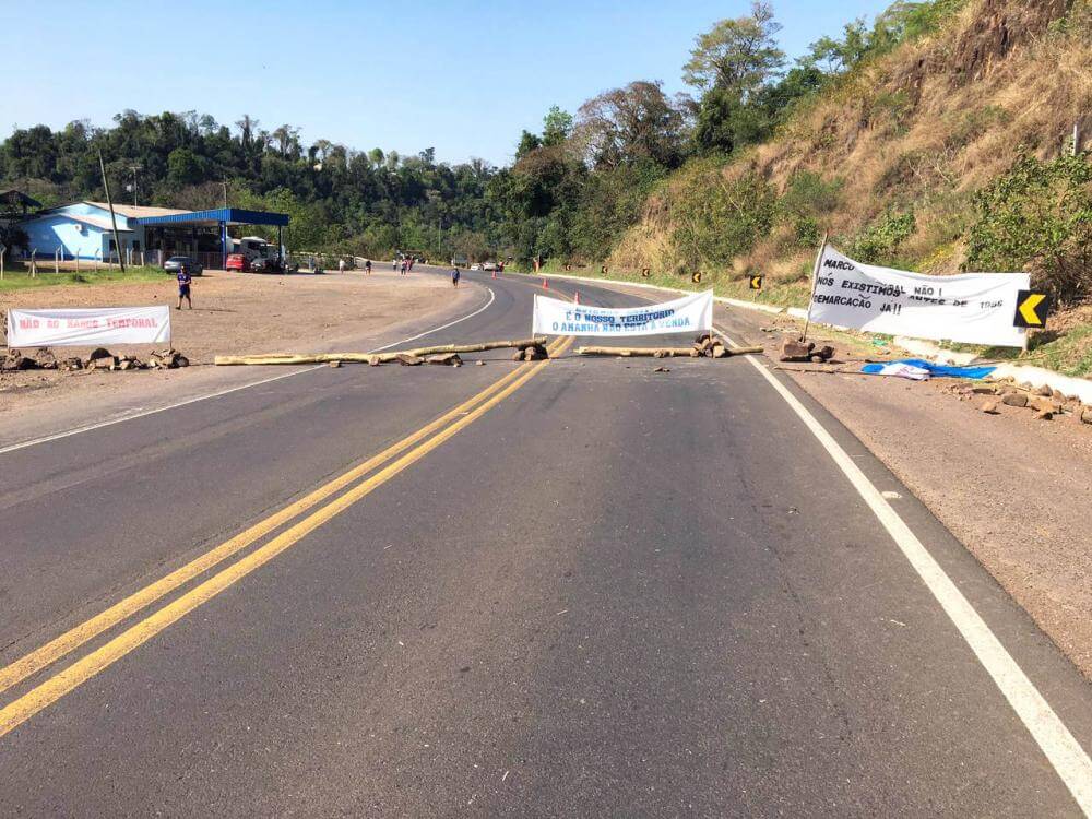 Indígenas bloqueam novamente o quilômetro 2, no trecho da BR-386, em Iraí, nesta quinta-feira, 21. De acordo com a Polícia Rodoviária Federal (PRF), com sede em Sarandi, os bloqueios são realizados de formas alternadas para evitar acumulo de veículos. Este protesto contra a retomada, pelo Supremo Tribunal Federal (STF), do julgamento que avalia a legalidade da tese do marco temporal. De acordo com a Polícia Rodoviária Federal (PRF), cerca de 50 pessoas estão no trecho desde as primeiras horas da manhã.