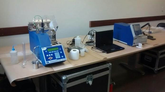 As análises foram realizadas em equipamentos certificados pela Agência Nacional do Petróleo e Biocombustíveis (ANP), como densímetro eletrônico, analisador de ponto de fulgor, condutivímetro, espectrômetro de infravermelho e provetas.