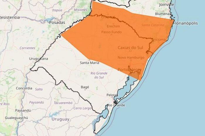 O Instituto Nacional de Meteorologia (Inmet) emitiu um alerta laranja, válido das 3h até 23h59min desta sexta-feira (6), para risco de temporal no Rio Grande do Sul. O marcador contempla áreas como a Região Metropolitana, o Norte, a Serra, o Litoral Norte e parte da Região Central e do Noroeste — todas da Metade Norte.