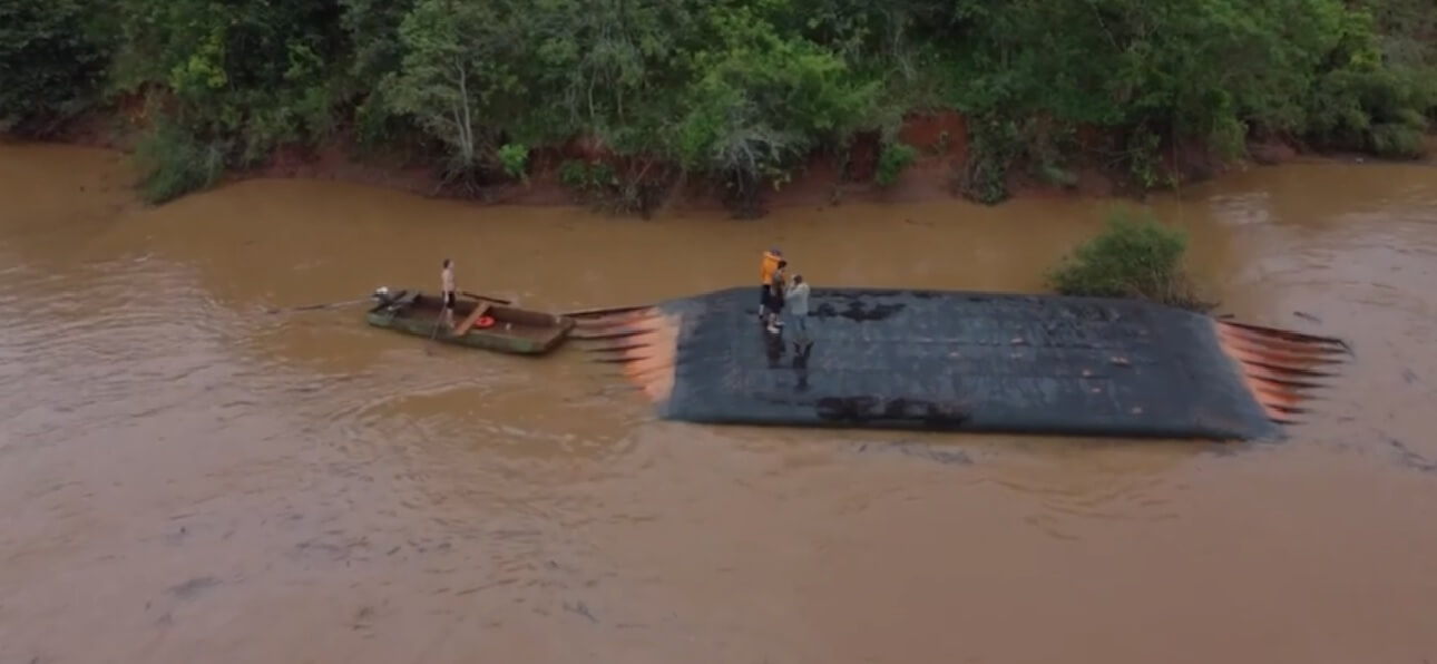 A balsa levava um caminhão carregado de tijolos. O motorista do veículo e o auxiliar da balsa conseguiram se salvar, mas o balseiro está desaparecido. De acordo com a Defesa Civil, o homem foi identificado como Flávio Tobaldini.