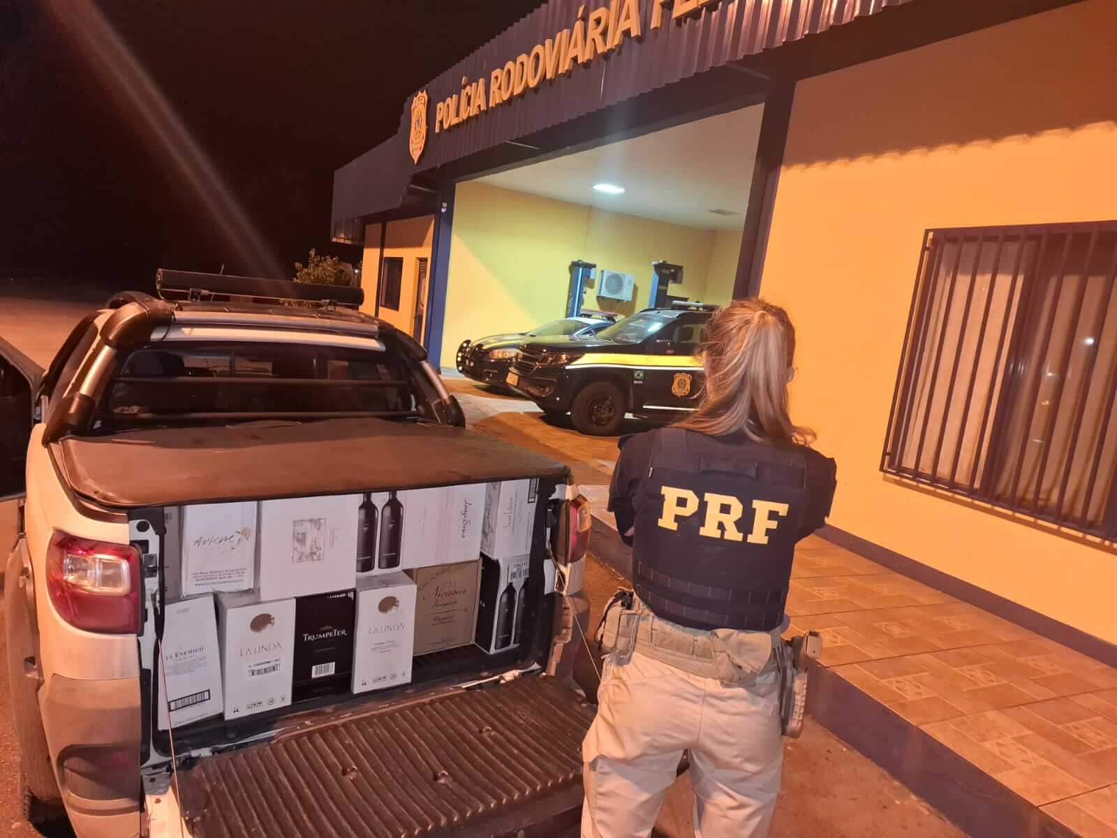 Na noite deste sábado (21), a Polícia Rodoviária Federal apreendeu cerca de 300 garrafas de vinho na caçamba de uma caminhonete, abordada na BR 386 em Sarandi.