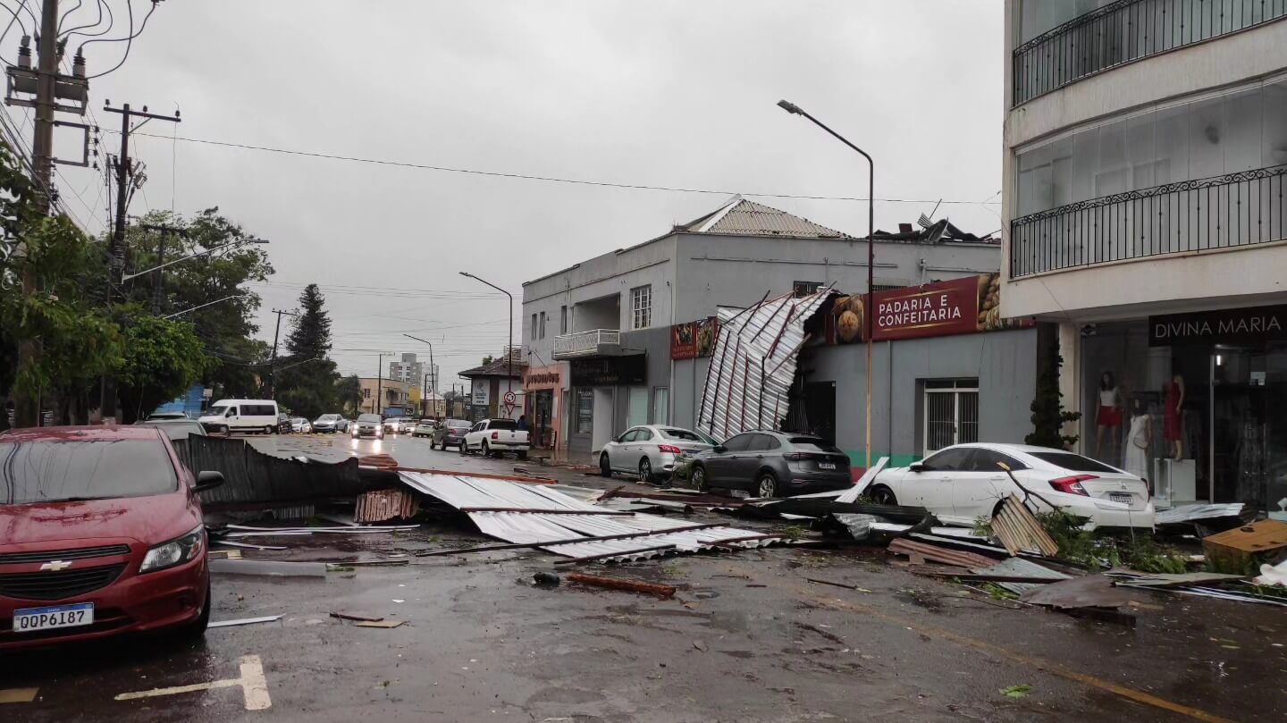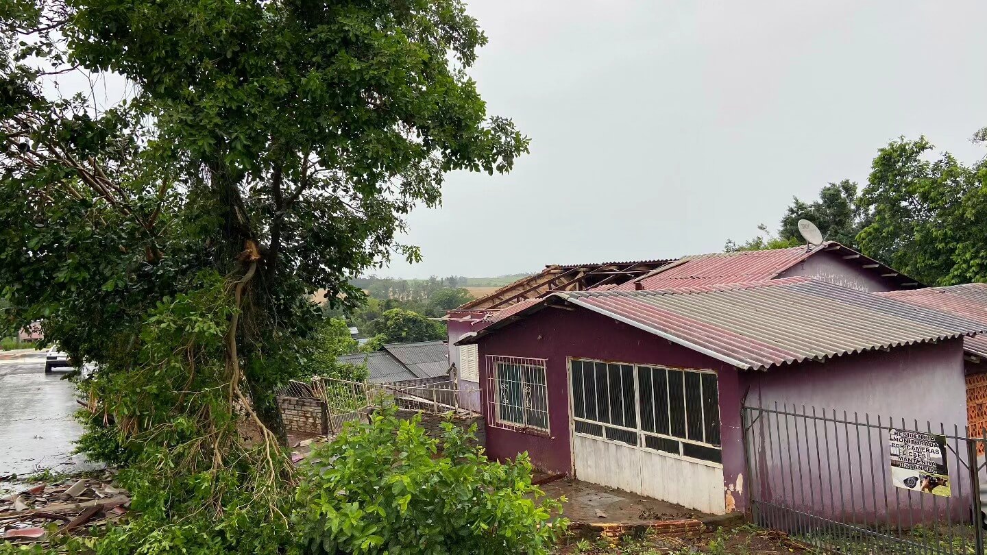 Em relação aos prédios públicos, uma unidade de saúde (ESF 1) e algumas escolas também tiveram danos parciais nos telhados. Prédios de empresas e de entidades também foram atingidos.