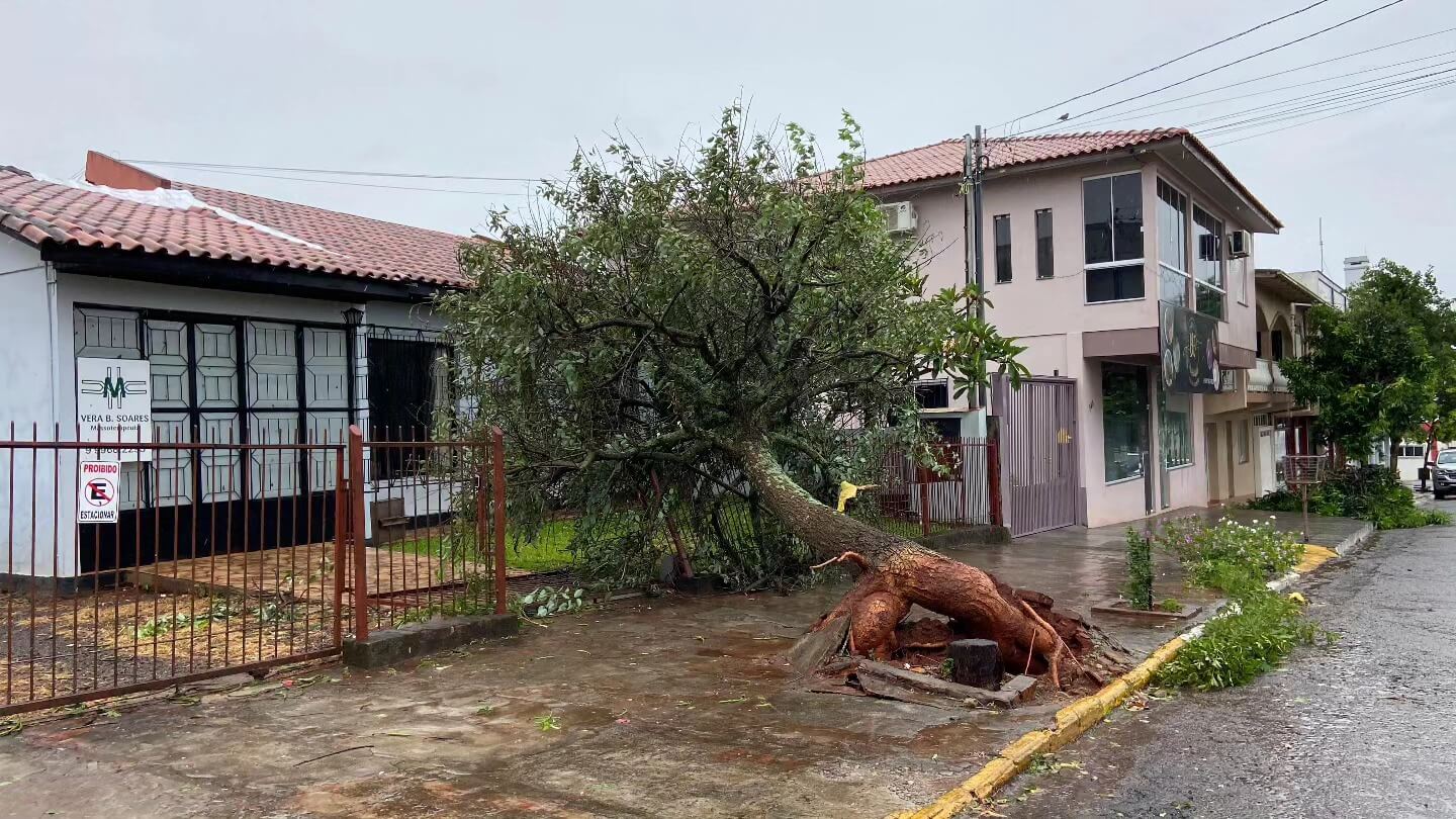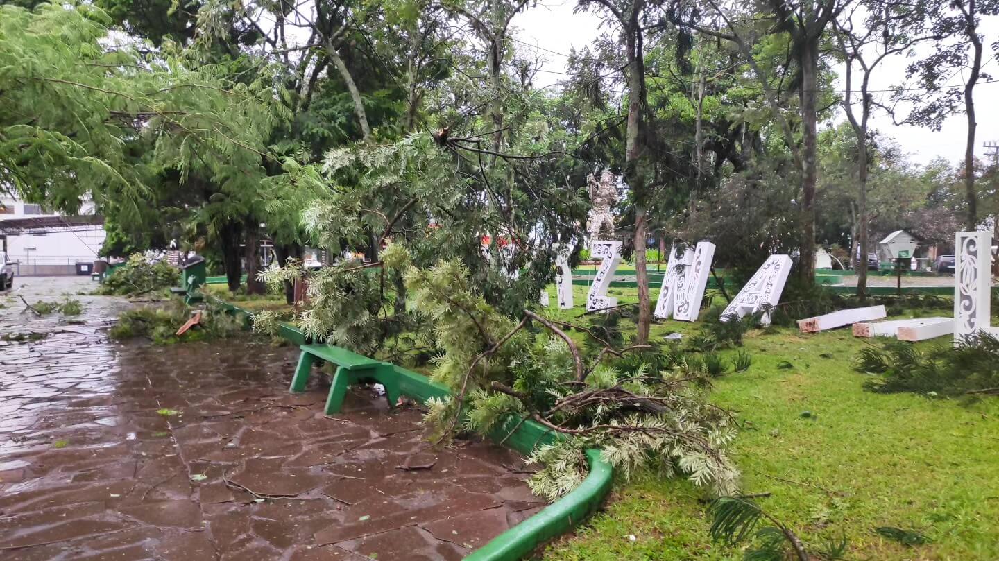 Os fortes ventos registrado por volta das 7h50min, provocaram ainda a queda de dezenas de árvores e postes de energia elétrica. Até às 14horas, parte da cidade ainda permanecia sem luz.