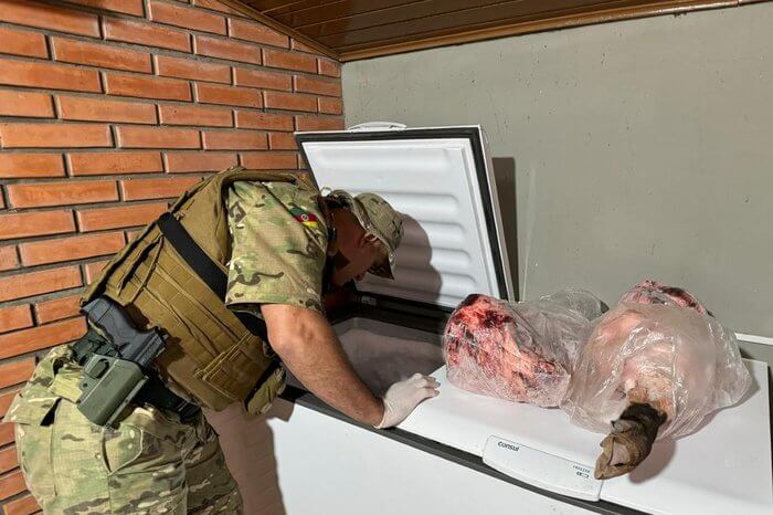 Carne sem procedência, que seria de javali, foi apreendida em refrigeradores de imóveis que foram alvos de mandados judiciais cumpridos pela polícia. Conforme os investigadores, em uma das conversas, um dos suspeitos alerta outro que a carne do javali abatido estaria "com inflamações e podre".