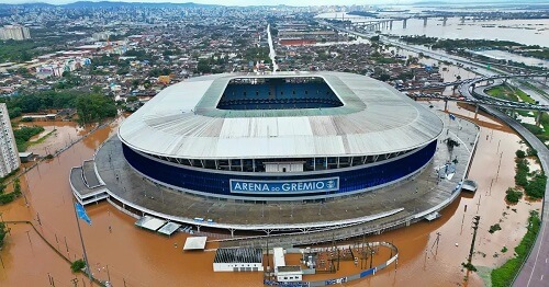 Na segunda-feira, Grêmio, Inter e Juventude formalizaram um pedido à CBF para que seus compromissos no Brasileirão e na Copa do Brasil sejam adiados pelos próximos 20 dias. A elevação do Rio Guaíba, que atingiu a marca de 5,3 metros, alagou tanto os centros de treinamento quanto os estádios da dupla Gre-Nal - o Juventude, de Caxias do Sul, na serra rio-grandense, continua treinando.