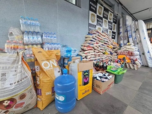 Foram apreendidos quilos de alimento, ração, fardos de água, itens de higiene e roupas. "Estima-se que, além do dano causado às familias, os investigados tenham desviado cerca de R$50 mil em donativos comenta o delegado.