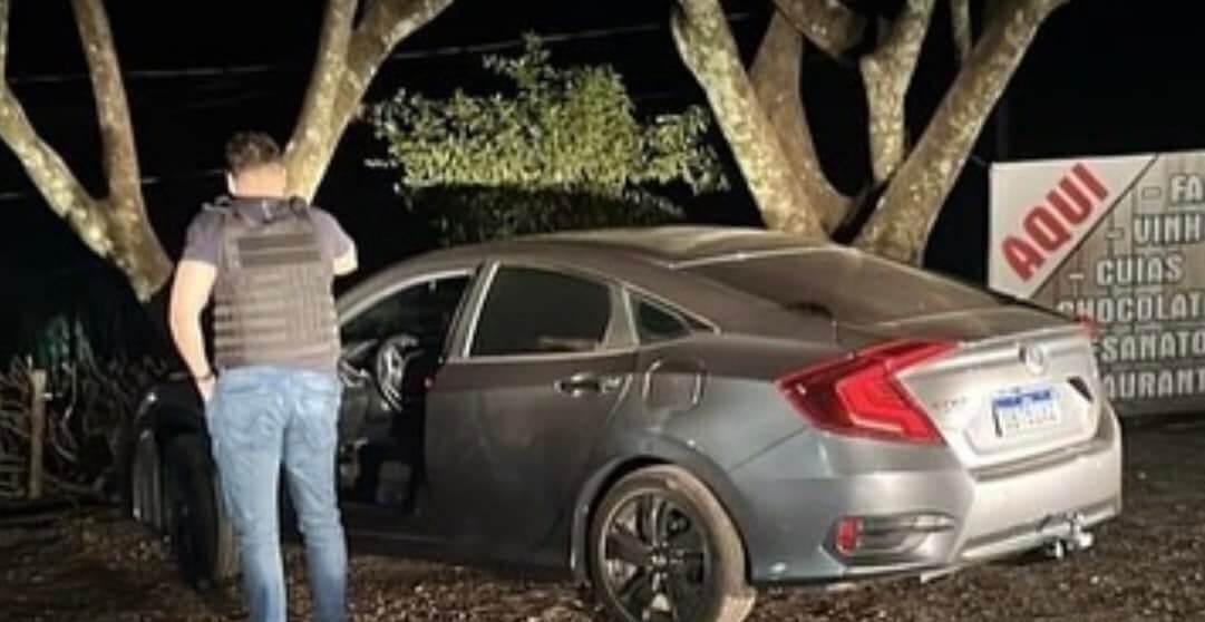 Em uma ágil ação policial, com apoio de militares e civis da região, o Civic foi localizado ainda no início desta noite, no município de Iraí - RS. Ainda não há informações sobre o autor do roubo. A ocorrência segue em andamento.