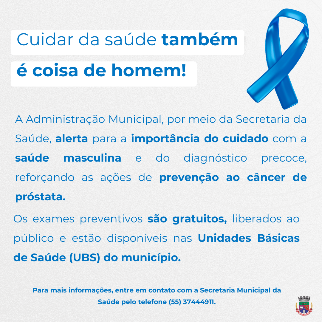 Em Frederico Westphalen, a Administração Municipal, por meio da Secretaria da Saúde, alerta para a importância do cuidado com a saúde masculina e do diagnóstico precoce, reforçando as ações de prevenção ao câncer de próstata.