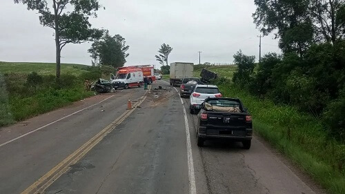 Segundo informações preliminares, os veículos se chocaram em uma curva. Com o impacto, o caminhão saiu da pista e a caminhonete foi arremessada para o acostamento da rodovia.