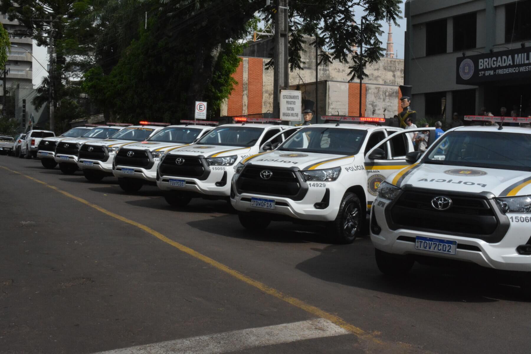 Durante o ato, foi destacado que seis viaturas foram adquiridas com recursos do Fundo do Plano Rio Grande (FUNRIGS) e uma foi destinada à Força Tática por meio do Programa de Incentivo ao Aparelhamento da Segurança Pública (PISEG), contando com a participação de empresas locais que contribuíram para a captação dos recursos.
