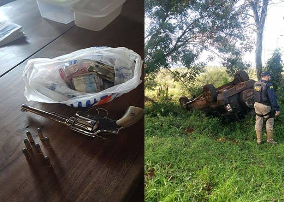 As equipes se posicionaram e após acompanhamento o meliante colidiu em um carro lateralmente, perdeu a direção e capotou em frente ao posto PRF de Lajeado. O criminoso que tem dois homicídios e varios crimes, voou pela porta do veículo e foi detido junto com um revólver roubado e várias cédulas de dinheiro.