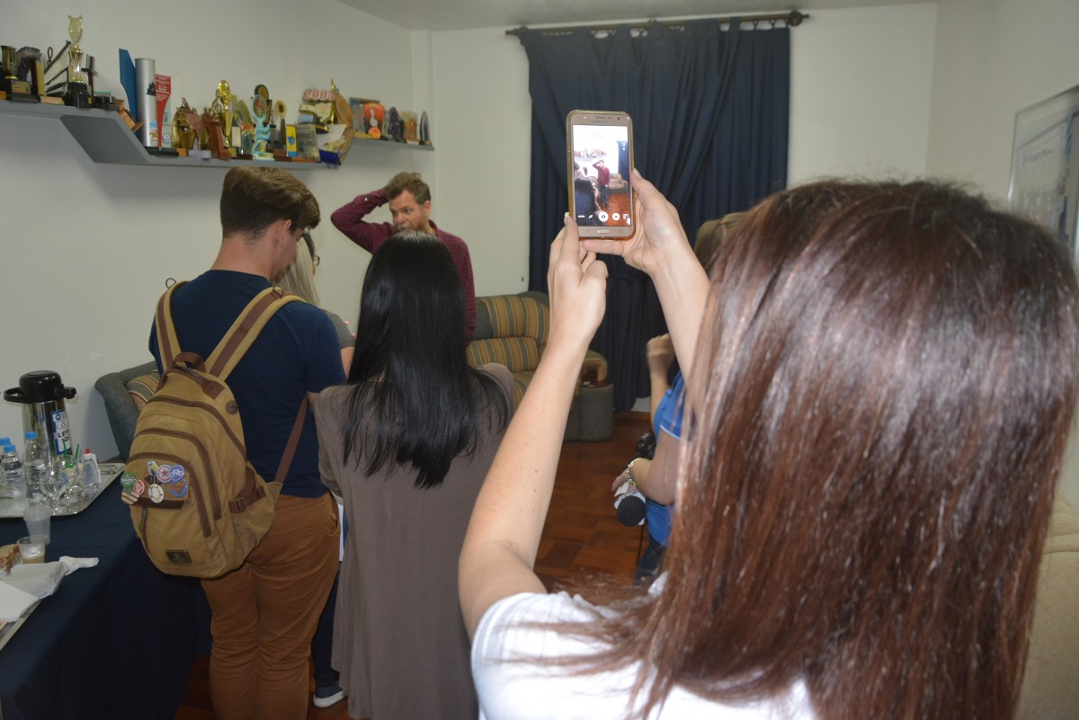 Uma noite especial... Repleta de solidariedade, simpatia e muitas risadas. Esse foi o roteiro da palestra do jornalista e apresentados Marcos Piangers. Em quase duas horas de um ótima conversa, com direito a muitas tiradas inteligentes, histórias emocionantes e cômicas também, ele arrebatou o público de mais de 800 pessoas que lotou o Salão de Atos de URI/FW.