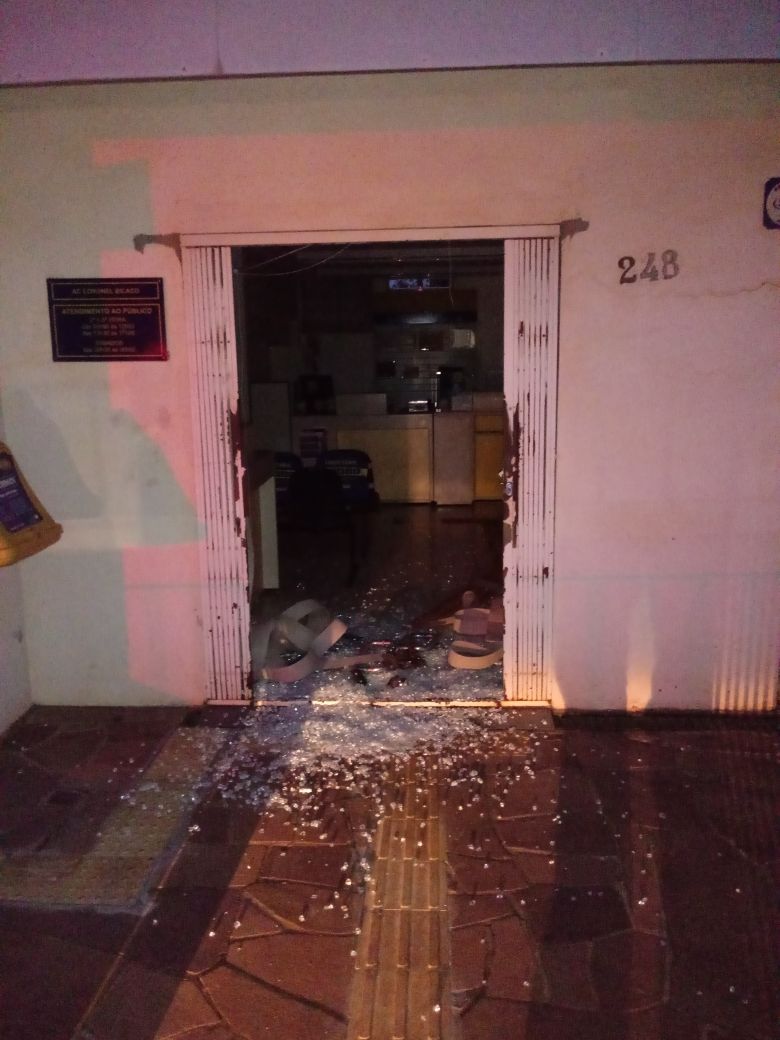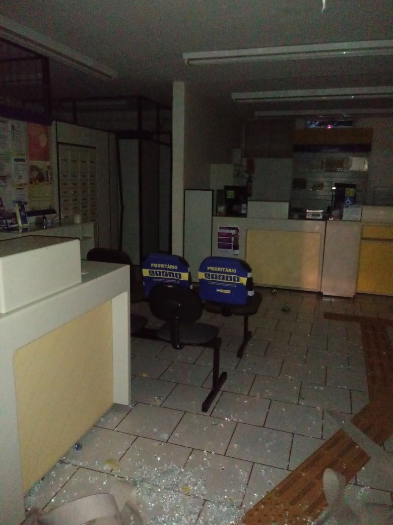 Na agência bancária os criminosos utilizaram explosivos o que deixou o local destruído como é possível observar nas fotos fornecidas pela BM. Já no Correio foi quebrado a porta de vidro da frente e arrombada a grade de proteção. Os ataques ocorreram por volta das 3h.