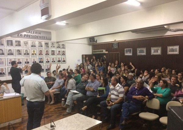Pela maioria dos servidores presentes na assembleia foi aprovada a greve geral. Foram 57 votos favoráveis e 37 contrários. “A adesão à greve é livre, cada servidor, mesmo aqueles que não estavam aqui podem aderir ou não. É importante que cada um organize-se no seu setor e respeito aqueles que querem continuar trabalhando. Os serviços essenciais não podem parar. Agora vamos definir as ações e como negociar com a administração, além de dar ampla divulgação para a decisão da assembleia. A greve só começa depois disso, ou seja, na segunda-feira, 19”, salientou o presidente do Sindicato, Ivonei Fão.