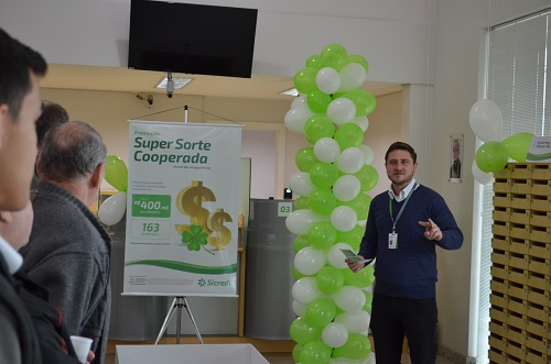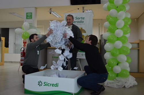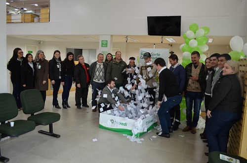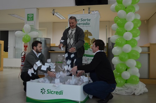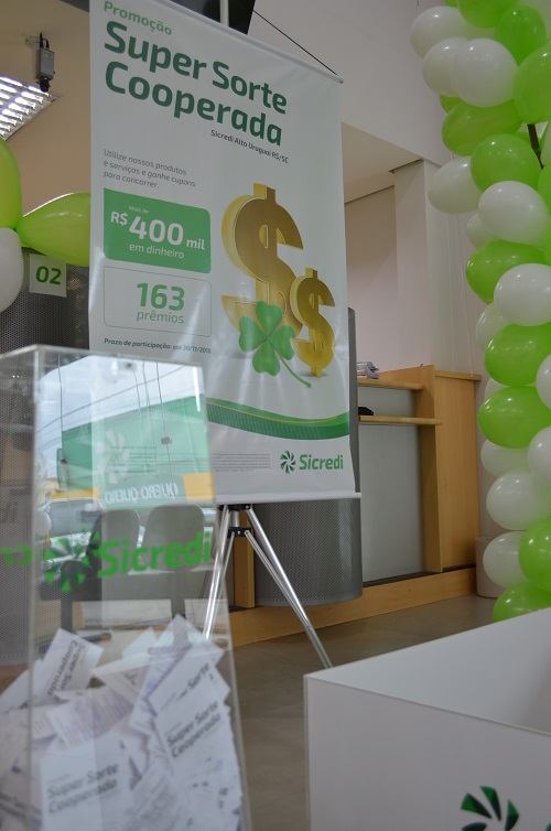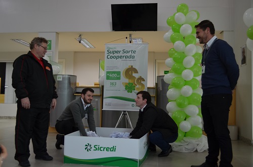A Sicredi Alto Uruguai RS/SC/MG, promove a 12ª edição da campanha Super Sorte Cooperada. Na manhã desta quarta-feira, 22, foi realizado o primeiro sorteio de 76 prêmios de R$ 1 mil. Nas agências com menos de R$ 25 milhões de depósitos totais foram sorteados dois prêmios de R$ 1 mil e nas demais agências, quatro prêmios de R$ 1 mil.
