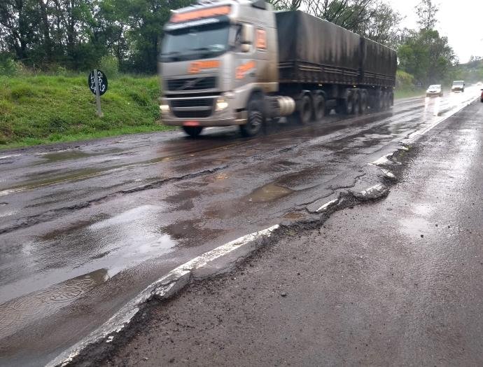 Depois de vários dias de chuvas fortes, a situação da pista da BR 386 (Estrada da Produção), nos 75 km de Iraí a Boa Vista das Missões, agravou-se com o surgimento de mais buracos e ondulações. Sem uma recuperação efetiva há anos e a realização de pequenas ações de tapa buracos por empresa contratada pelo Dnit, o asfalto em apresenta muitos problemas. Segundo o presidente da Associação dos Municípios da Zona da Produção (Amzop), Gilson de Carli, outra preocupação constante dos motoristas em dias de chuva é a ocorrência de aquaplanagem. “Isso por que em dezenas de locais o asfalto cedeu, formando valas onde ocorre o acúmulo de água, situação que provoca a perda de controle por parte dos motoristas”, observa.