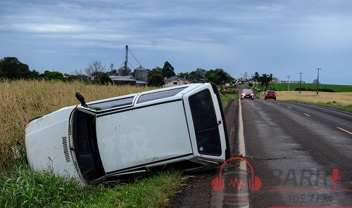 Veículo capota após motorista perder o controle e sair da pista na ERS-472