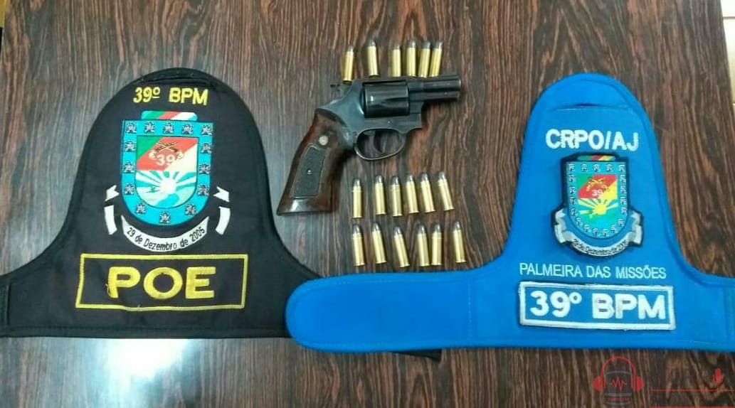 Imediatamente foi solicitado apoio do POE do 39º BPM de Palmeira das Missões, foi deslocado ao local indicado, sendo que ao chegar no local foi avistado o referido indivíduo que correu para o interior da residência, onde acabou sendo preso e junto com o mesmo foi encontrado um Revolver Calibre .38 carregado com 5 munição intactas e com a numeração raspada e mais 13 munições.