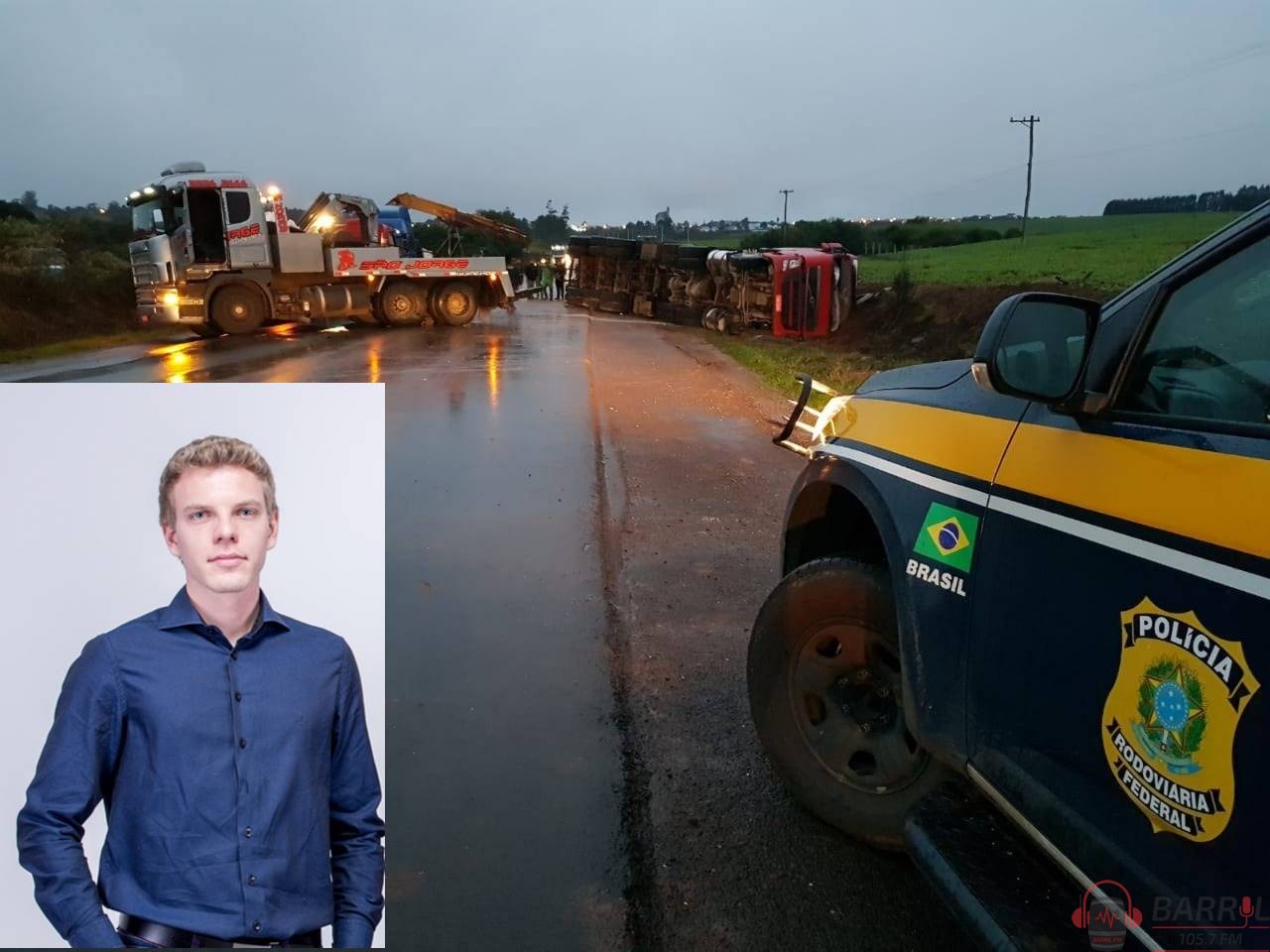 Um acidente de trânsito ocorrido na madrugada de desta sexta-feira, 24, vitimou o seberiense Paulo Roberto Rigon, de 25 anos. Ele conduzia um caminhão bitrem que tombou por volta da 1 hora, no quilômetro 257, da BR-158, em Júlio de Castilhos.