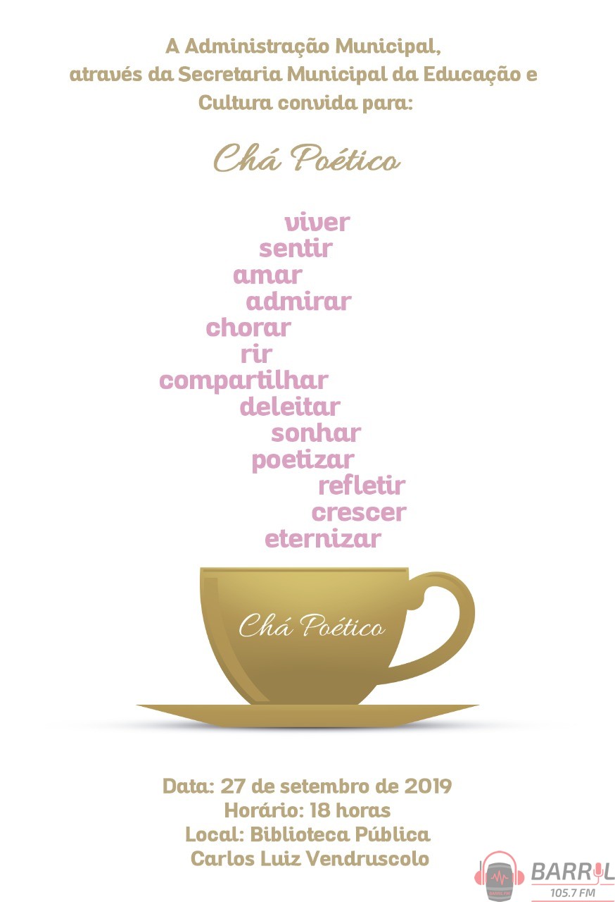 A Secretaria Municipal da Educação e Cultura de Frederico Westphalen lançará nesta sexta-feira, 27, a 37ª Feira do Livro do município. O evento intitulado como Chá Poético, ocorrerá na Biblioteca Pública Carlos Luiz Vendruscolo, às 18 horas, com o objetivo de divulgar a programação desta edição da feira que acontecerá nos dias 2, 3 e 4 de outubro de 2019.