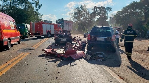 Além do Uno, o acidente também envolveu uma Hyundai Tucson de Ijuí e uma carreta de Anta Gorda, que transportava uma retroescavadeira.