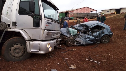 Um caminhão cargo, com placas de Cunha Porã-SC colidiu frontalmente com um gol emplacado em Boa Vista das Missões. Segundo informações, o caminhão tentou desviar de um trator que trafegava na rodovia.