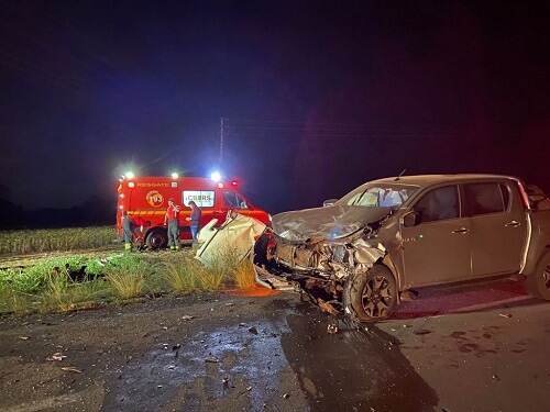 Uma colisão entre uma caminhonete e um carro deixou três vítimas fatais no Km 173 da ERS 332, em Não-Me-Toque, na noite deste domingo, 17. O acidente ocorreu por volta das 19h.