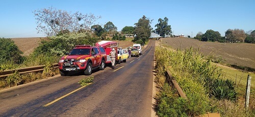 O Corpo de Bombeiros chegou logo após o acidente, pois estavam passando pelo local.